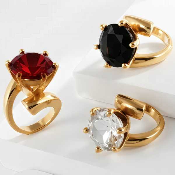 Stainless Steel Curved Gemstone Ring Stylish Elegant Design for Women | XHBL-1