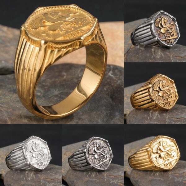 24K Gold PVD Stainless Steel Titanium Antique Coin Men’s Ring