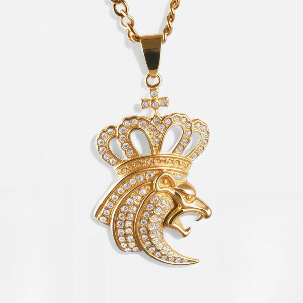 European And American Hip-Hop Style Fashion Men’s Crown Lion Head Stainless Steel Pendant丨JSSZ444