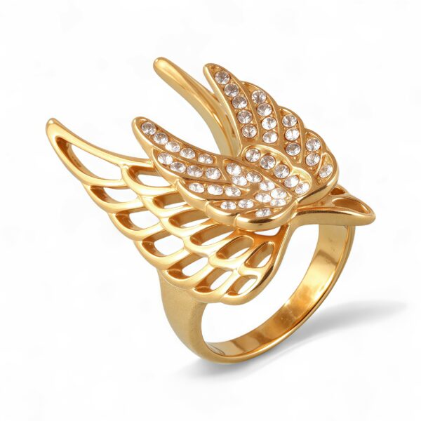 24k Gold Inlaid Crystal Wing Pattern Stainless Steel Female Ring丨C-306