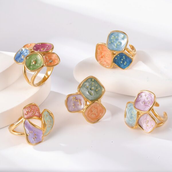 24K Gold PVD Stainless Steel Titanium Colorful Flower Women’s Ring