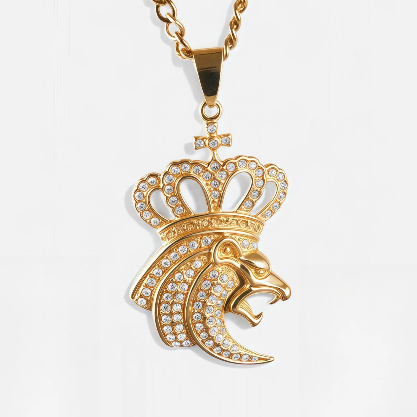 European And American Hip-Hop Style Fashion Men’s Crown Lion Head Stainless Steel Pendant丨JSSZ444