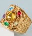 24k gold plated stainless steel men’s ring with multi-colored gemstonesحB044
